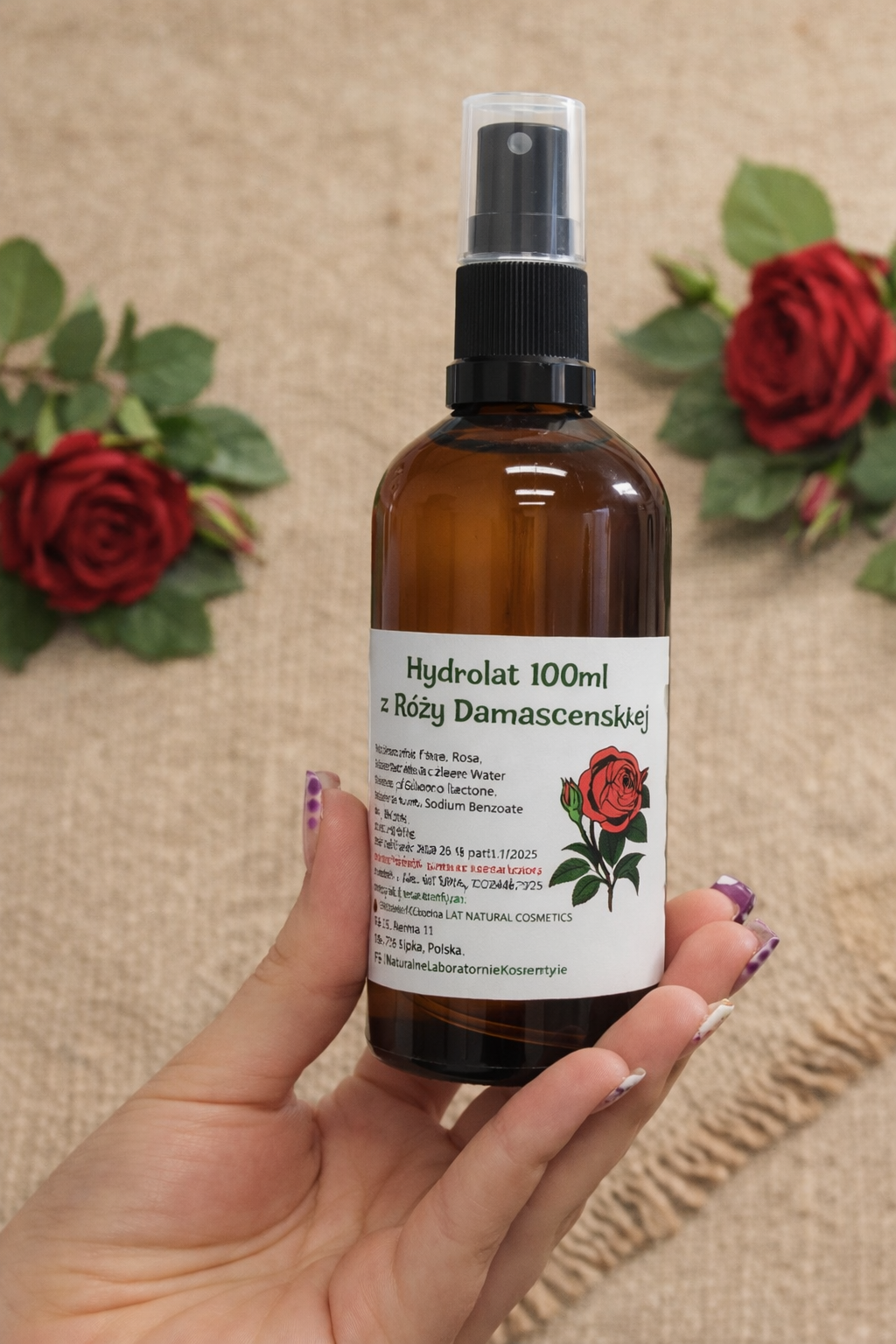 Hydrolat (destylat wodny) z róży damasceńskiej to naturalny półprodukt otrzymywany w procesie destylacji.